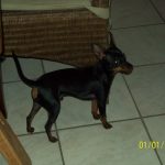 Hier onze Pincher die we enkele maanden kochten bij Housssin en was bij hen een tijdje opgebracht in het huis zelf en was nog zo klein.